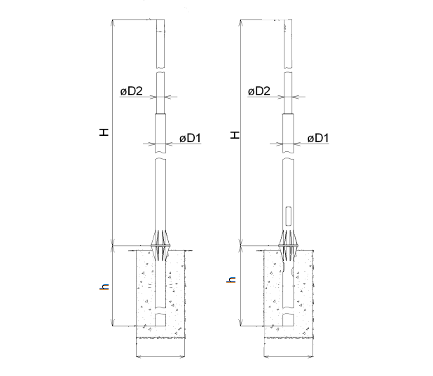 Опора силовая фланцевая трубчатая может быть установлена в грунт, на бетонное основание или закладной опорный элемент.